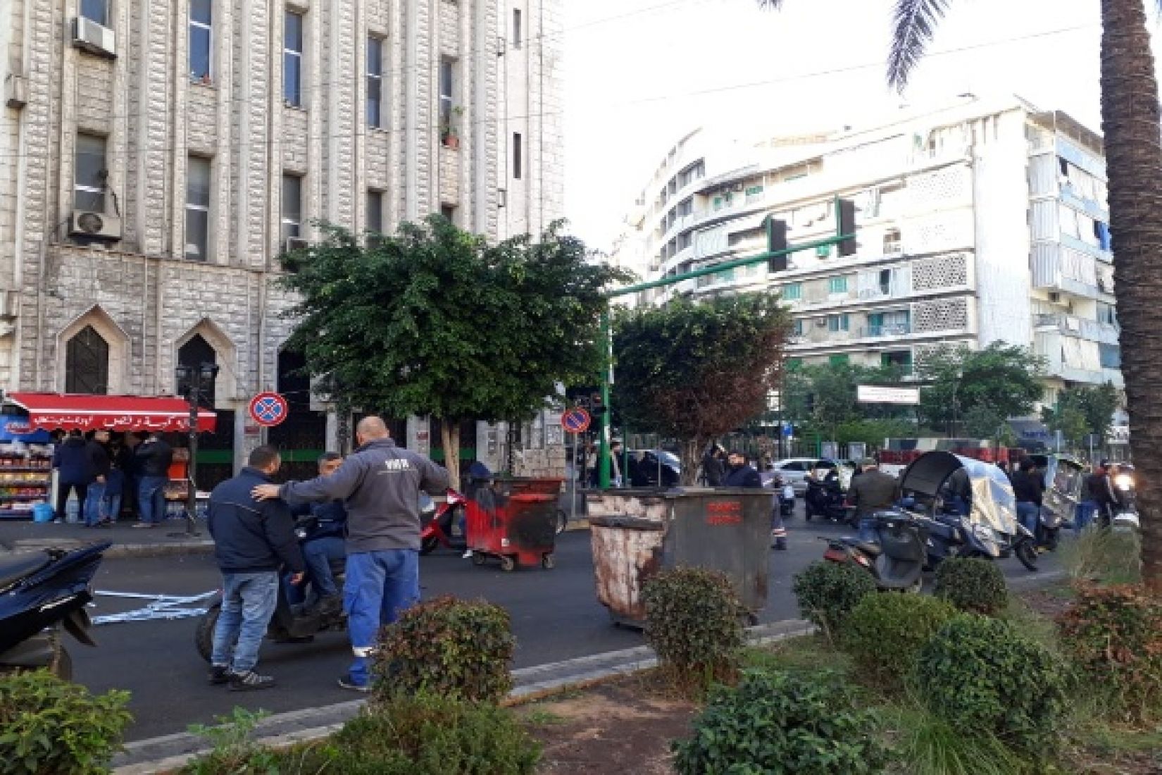 استقدم المحتجون في منطقة كورنيش المزرعة شاحنة تحمل الاتربة ويحاولون افراغها لقطع الطريق، والجيش يمنعهم.