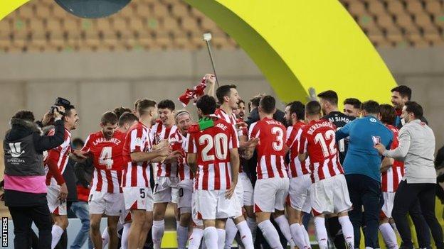 في إسبانيا أسبوع تاريخي لأتليتيكو بلباو , بعد إخراجه ريال مدريد من الدور النصف نهائي استطاع بعد ثلاثة أيام من القضاء على ءامال برشلونة في إحراز أول لقب له هذا الموسم , وفاز عليه في المباراة النهائية من بطولة كأس السوبر الإسباني بنتيجة (3-2) بعد تمديد الوقت . في المباراة التي أجريت ليلاً في إشبيلية و شهدت طرد نجم برشلونة الأرجنتيني ميسي في نهايتها وهي المرة الأولى التي يُطرد فيها ميسي في تاريخ مشاركاته مع برشلونة . وكان بلباو أحرز كأس السوبر عام 2015 إثر فوزه على برشلونة أيضاً ذهاباً وإياباً حسب نظام الكأس السابق بنتيجة (5-1) , وفاز بها أول مرّة عام 84 . ويحتفظ برشلونة بالرقم القياسي برصيد 13 لقباً , يليه ريال مدريد برصيد 11 لقب .