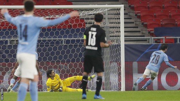 لاعب مانشستر برناردو سيلفا يفتتح التسجيل .