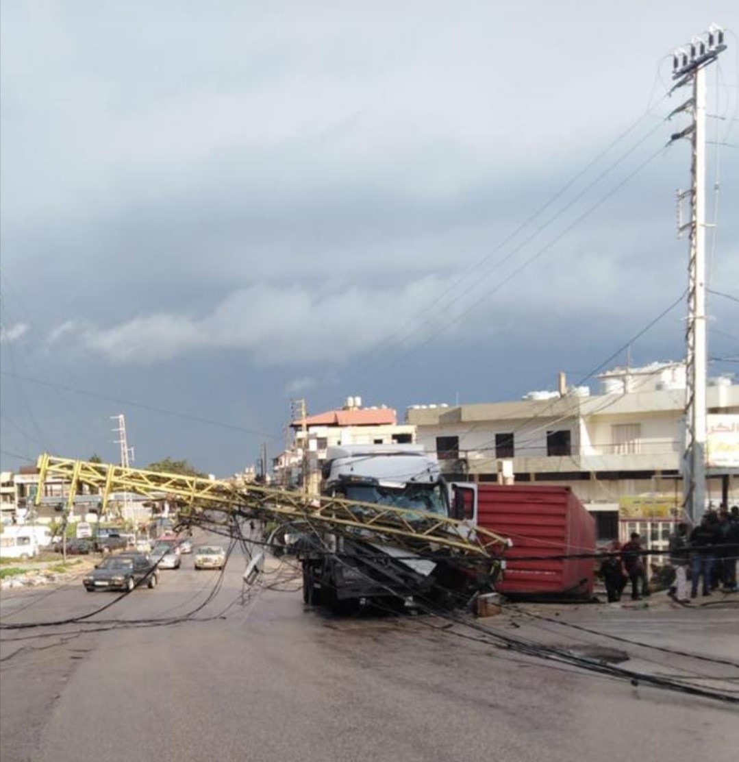 سقوط عمود كهرباء يقطع طريق الضنية ـ طرابلس
