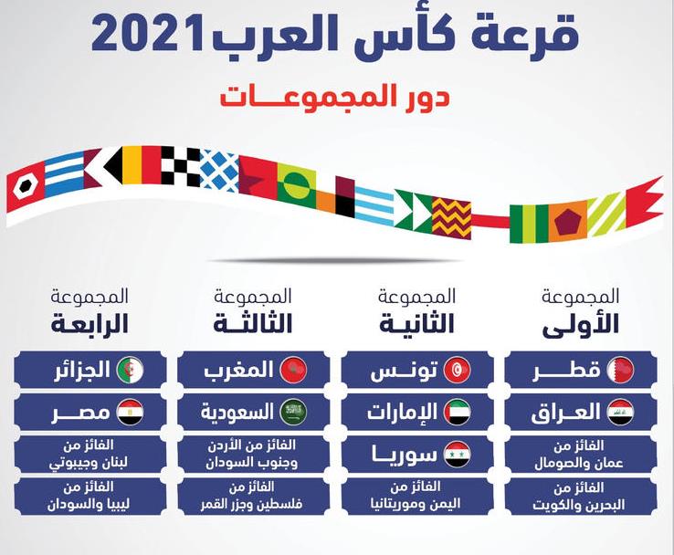 أقيمت أمس في القصر الثقافي في العاصمة القطرية الدوحة قرعة بطولة كأس العرب العاشرة التي تستضيفها قطر في الفترة ما بين 1 و18 كانون الأول 2021 , بإشراف رئيس الإتحاد الدولي لكرة القدم الفيفا جياني إنفانتينو ورئيس الإتحاد العربي الأمير عبد العزيز بن تركي الفيصل وحضورمدرّبي المنتخبات العربية . قُسّمت الفرق ال23 المشاركة إلى قسمين حيث تأهلت تسعة فرق ذات التصنيف الأعلى بحسب ترتيب الإتحاد الدولي الفيفا , مباشرة إلى دور المجموعات بينما تخوض الفرق الأربعة عشر الأخرى ذات التصنيف الأدنى دورة تصفية من مباراة واحدة تنتقل بنتيجتها السبعة الفائزة إلى دور المجموعات . وتوزعت كالتالي :
