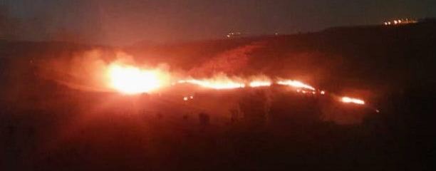 قنبلة مضيئة القاها العدو الاسرائيلي في خراج بليدا تسببت بحريق
