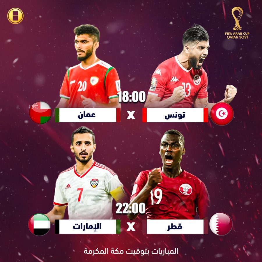 ينطلق في الخامسة من هذا المساء بتوقيت بيروت الدور الربع نهائي من بطولة كأس العرب التي تستضيفها قطر على ملاعب كأس العالم . فتقام مباراتان , تلعب في الأولى تونس ضد عُمان على ملعب المدينة التعليمية , وفي الساعة التاسعة تلعب قطر ضد الإمارات على ملعب ستاد البيت .ويُستكمل الدور الربع نهائي غداً السبت بمباراتين فتلعب في الخامسة ليلاً مصر ضد الأردن على ملعب الجنوب , يليها في الساعة التاسعة مباراة القمّة المبكّرة بين الجزائر والمغرب , على ملعب الثمامة .