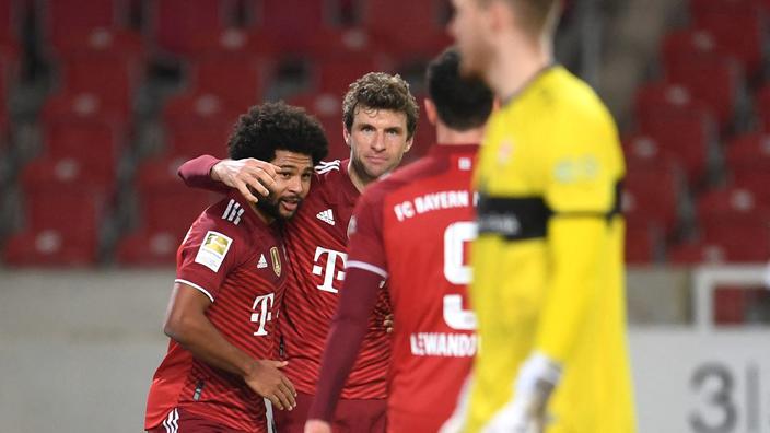 نجم وسط بايرن سيرج غنابري يتلقى تهنئة من مولر .