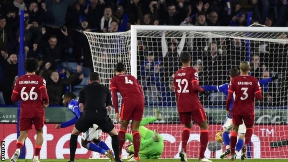 فقد ليفربول نقاطاً غالية في الصراع على بطولة الدوري الإنكليزي , بسقوطه المفاجئ أمام مضيفه ليستر سيتي (0-1) في المباراة التي أجريت ليلاً في إفتتاح المرحلة 20 . وأهدر فيها النجم المصري محمد صلاح ركلة جزاء في الدقيقة 15, نجح حارس ليستر كاسبر شمايكل في صدّها . وسجّل ليستر هدفه الوحيد بواسطة المهاجم أديمولا لوكمان في الدقيقة 59 . وهذه هي الخسارة الثانية لليفربول في الدوري هذا الموسم ابتعد على إثرها في المركز الثاني بفارق ست نقاط عن مانشستر سيتي , الذي أمامه فرصة توسيع الفارق في الصدارة إلى تسع نقاط في حال فوزه هذا المساء على برينتفورد . وقد يُنهي ليفربول العام 2021 في المركز الثالث خلف تشلسي الذي يكفيه التعادل في مباراته ضمن المرحلة أمام برايتون , للتقدّم نحو المركز الثاني .