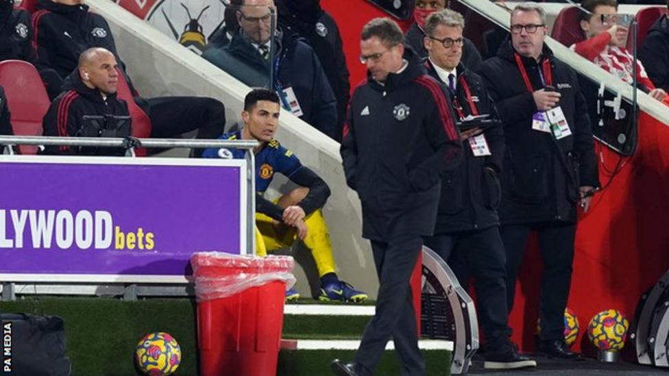 فاز مانشستر يونايتد خارج أرضه على برنتفورد الرابع عشر بنتيجة (3-1) في مباراة مؤجّلة من المرحلة 17 من بطولة الدوري الإنكليزي لكرة القدم . لكن فرحة ذلك الفوز عكّرها التوتر بين مدرّب مانشستر الألماني رالف رانغنيك والنّجم البرتغالي رونالدو . وحصل ذلك في الدقيقة 71 من المباراة , عندما قرّر المدرّب رانغنيك تبديل رونالدو بالمدافع هاري ماغواير , غير أنّ ذلك لم يُعجب رونالدو الذي خرج غاضباً متمتماً بكلمات , ثم رمى معطفه أرضاً قبل الجلوس على مقعد الإحتياط , ولم يلبث طويلاً لينتقل بعد ذلك إلى المدرّجات . وحاول المدرّب الألماني تخفيف التوتر بشرح هدفه من التبديل إلا أنّ ذلك لم يُقنع رونالدو . واستمرّ التوتر بين الطرفين حتى أنهما لم يحتفلا بالهدف الثالث الذي سجّله راشفورد لمانشستر . وتأتي هذه الحادثة لتؤكّد الأخبار عن الأجواء المشحونة بين رونالدو ولاعبي مانشستر , إذ يصفهم رونالدو بناقصي الخبرة وعديمي الطموح . ويحتل مانشستر يونايتد المركز السابع في ترتيب الدوري , مركز خارج عن طموح رونالدو الذي ينوي المغادرة في حال لم يتحسّن الوضع .