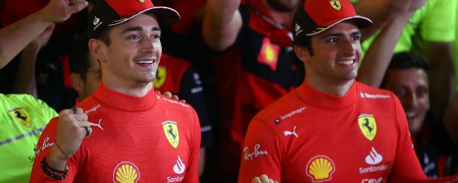سائقا فيراري ساينز ولوكلير فرحين بالفوز .
