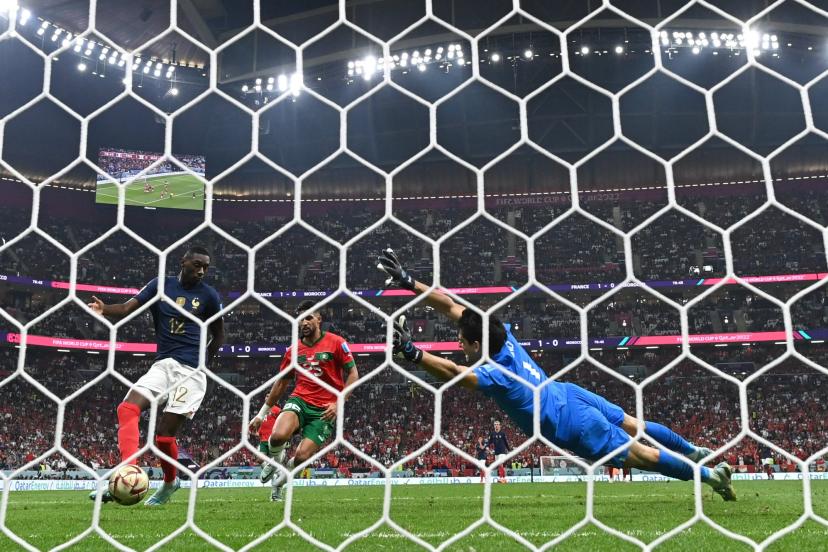 واصل منتخب فرنسا حملة الدّفاع عن لقبه بنجاح , وبلغ المباراة النّهائية للمرّة الثانية على التوالي في تاريخ مشاركاته في بطولات كأس العالم , إثر فوزه على منتخب المغرب بنتيجة (2-0) , في المباراة التي أُجريت ليلاً على ملعب البيت , في ختام الدّور النّصف نهائي لمونديال قطر 2022 لكرة القدم , أمام نحو 68 ألف متفرّج تقدّمهم الرئيس الفرنسي إيمانويل ماكرون , الشوط الأوّل (1-0) . وكما جرت العادة اعتمد المدرّب الفرنسي ديدييه ديشان على صلابة دفاعه بقيادة البديل إبراهيما كوناتي مدافع ليفربول , وسرعة نجم الهجوم المدهشة كيليان مبابي , فسجّل هدفاً مبكّراً في الدقيقة الخامسة بواسطة المدافع تيو هرنانديز , وأضاف المهاجم البديل كولو مواني الثاني فور دخوله في الدقيقة 79 من الشوط الثاني , إثر مجهود فردي من النّجم كيليان مبابي اخترق به دفاعات المغرب . وستواجه فرنسا الأرجنتين في المباراة النّهائية يوم الأحد , في لقاء ثأري للأرجنتين التي كانت خرجت من دور ال16 لمونديال روسيا 2018 بالخسارة أمام فرنسا ( 3-4) . في حين يواجه المغرب كرواتيا يوم السبت , في المباراة على المركز الثالث , وكان الفريقان التقيا في دور المجموعات , وأسفر اللقاء عن تعادل الفريقين من دون أهداف .