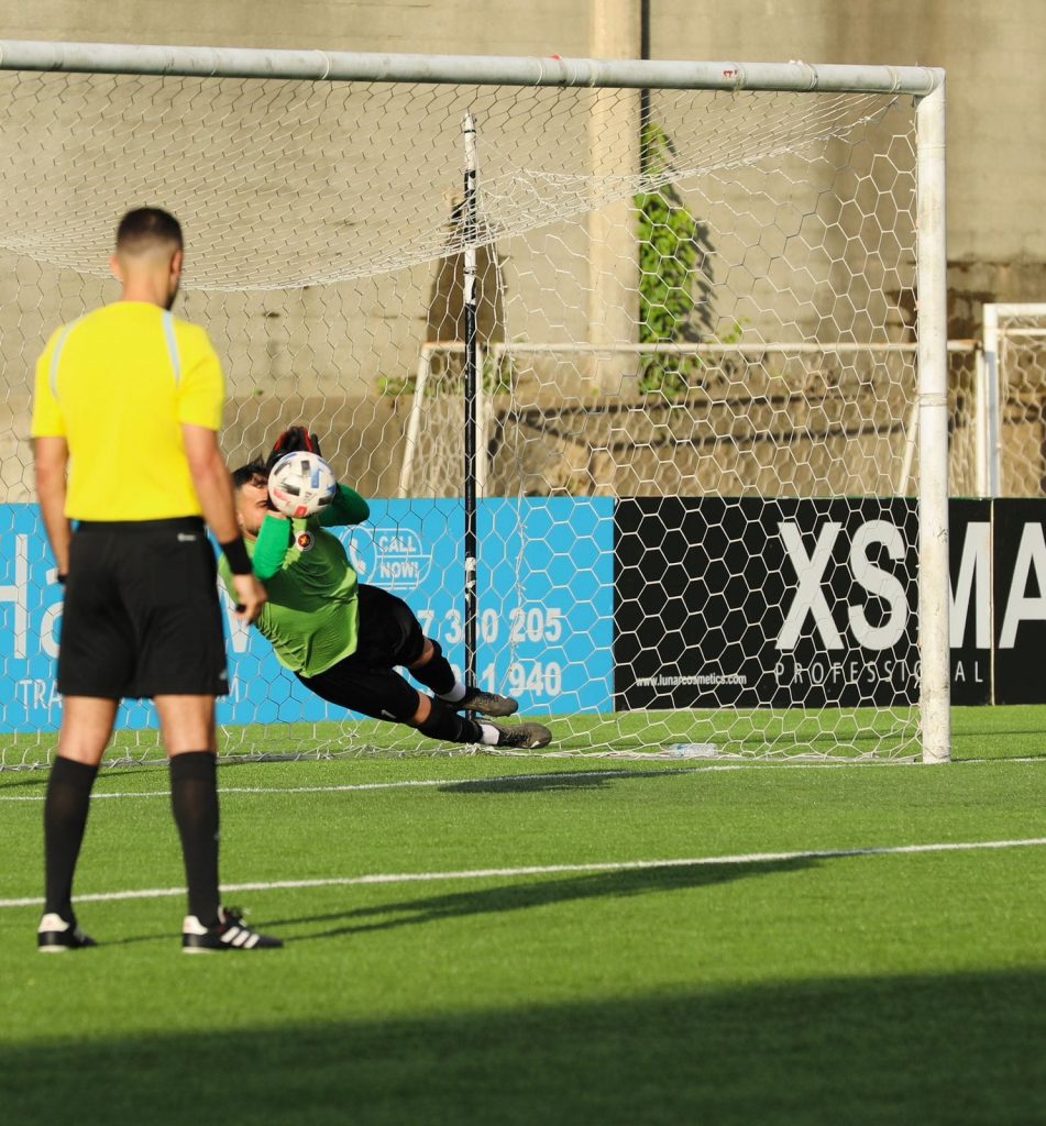 الحارس علي السبع يصدّ كرة محمد حيدر .