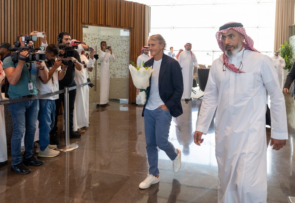 أعلن ياسر المسحل رئيس الإتحاد السعودي لكرة القدم عن تعيين الإيطالي روبرتو مانشيني مدرّبًا جديدًا للمنتخب السعودي خلفًا للفرنسي هيرفي رينار . مانشيني الذي كان قدّم قبل حوالي أسبوعين استقالته من تدريب منتخب إيطاليا , وقّع عقدًا مع الإتحاد السعودي لمدّة أربع سنوات مقابل 27 مليون دولار سنويًا . وفي تعليق له أثناء تقديمه لوسائل الإعلام قال مانشيني : أريد أن اشكر رئيس الإتحاد على اختياري لتدريب المنتخب السعودي , أنا فخور بوجودي هنا وقبول هذه المهمة . إذا أردت أن تستقدم لاعبين من طرازٍ عالٍ فلا بد أن تدفع لهم راتبًا عاليًا , من المهم أن تتعاقد مع لاعبين من الطراز العالي مثلما تفعل الأندية السعودية الآن , لأن ذلك سيؤدي إلى رفع مستوى اللاعب السعودي . هدفي الأوّل هو الفوز ببطولة كأس ءاسيا ( التي تستضيفها قطر في كانون الثاني المقبل ) أمامنا أربعة أشهر , سنخوض أربع مباريات ودّية ومباراتين ضمن تصفيات كاس العالم 2026 , وبعد ذلك سيكون لدينا 20 يومًا للتحضير لبطولة ءاسيا , أعلم أنّنا سنواجه فرقًا كبيرة مثل اليابان وأستراليا وكوريا الجنوبية , سنذهب إلى هناك للفوز .