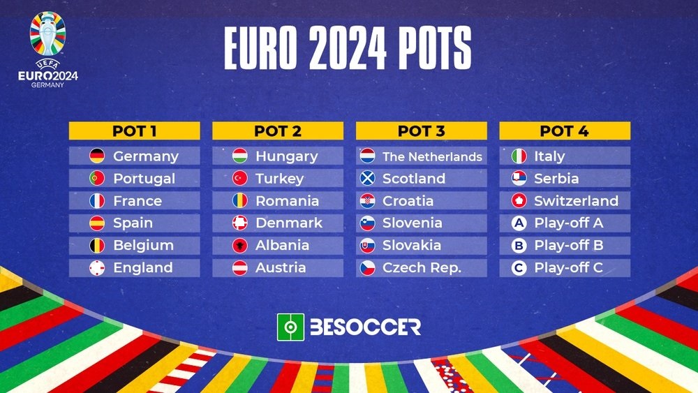 ينطلق في السابعة من هذا المساء بتوقيت بيروت في مدينة هامبورغ , مهرجان قرعة بطولة كأس الأمم الأوروبية لكرة القدم السابعة عشرة منذ انطلاقها عام 1960 ’’ يورو2024 ’’ , التي تسضيفها ألمانيا ( حاملة اللقب ثلاث مرّات ) خلال الفترة ما بين 14 حزيران حتى 14 تموز . ويشارك في البطولة 24 فريقًا تأهّل منهم حتى الآن 21 فريقًا , بانتظار صعود الفرق الثلاثة الأخيرة في ختام مباريات الملحق التي ستقام يومي 21 و 26 أذار المقبل . وتمّ توزيع الفرق في القرعة حسب التصنيف التالي :