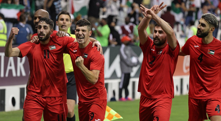فرحة لاعبي منتخب فلسطين بالفوز .