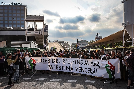 وبعد أسبوع من المظاهرات وإعلان الإضراب العام تأييدًا لفلسطين , نظّم متظاهرون قدّروا بحوالي 50 ألفًا في كتالونيا مظاهرات في بلدة مانريسا , ضد إقامة المباراة بين فريقي باكسي مانريسا و هبوعيل القدس الصهيوني , ضمن المرحلة الثالثة من بطولة كأس أوروبا BKT لكرة السلة ( أُقيمت المباراة ليلًا من دون جمهور وأسفرت عن فوز مانريسا 101-94 ) . وكانت الإحتجاجات بدأت صباحًا وأقام المتظاهرون حواجز على الطريق السريع C25 ثم على الطريق المؤدي إلى الملعب لمنع إقامة المباراة . واستعملت الشرطة الكتالونية رذاذ الفلفل والهراوات لإبعاد متظاهرين اعترضوا حافلة فريق هبوعيل لمنعه من التوجه إلى الملعب . وكان حشد من المتظاهرين تجمّع خارج الفندق المضيف , رفعوا لافتات كُتب عليها ’’ من النهر إلى البحر ’’ و ’’ فلسطين ستكون حرّة ’’ و ’’ لن يمرّوا ’’ . كما توجه حشد ءاخر إلى القنصلية الإسرائيلية في برشلونة حيث استعملت الشرطة الغاز المسيّل للدموع لمنع المتظاهرين من الإقتراب من مبنى القنصلية .