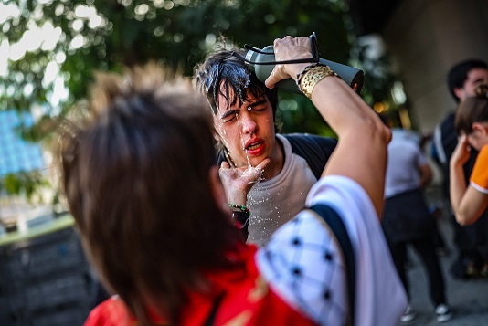 اشتباكات المتظاهرين مع الشرطة في كتالونيا ايضًا .