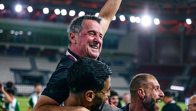 مدرّب الأنصار دراغان محمولًا بعد الفوز .